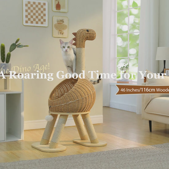 Le Dino XXL n’est pas un simple arbre à chat : c’est une pièce de décoration premium en rotin, un terrain d’aventure, une maison douillette et un griffoir durable réunis en un seul design spectaculaire.