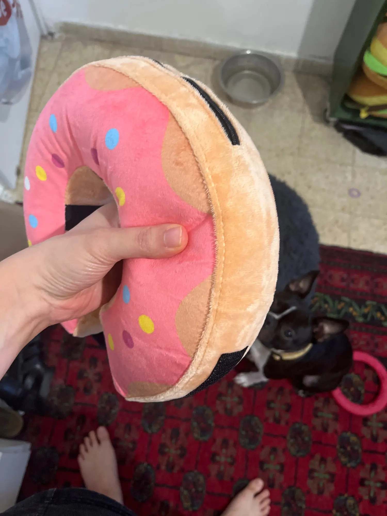 À l'intérieur se trouve un anneau gonflable, à l'extérieur se trouve un petit velours qui peut être retiré pour le lavage.